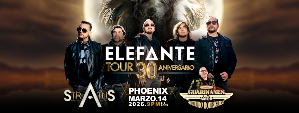 Mexican pop-rock group Elefante is set to celebrate three decades in music with their tour 30 Aniversario, making a stop this March at the Stratus Event Center in Phoenix. The anniversary tour promises a nostalgic night packed with the band’s biggest hits and fan-favorite ballads, giving longtime listeners and newer audiences a chance to experience their signature sound live.