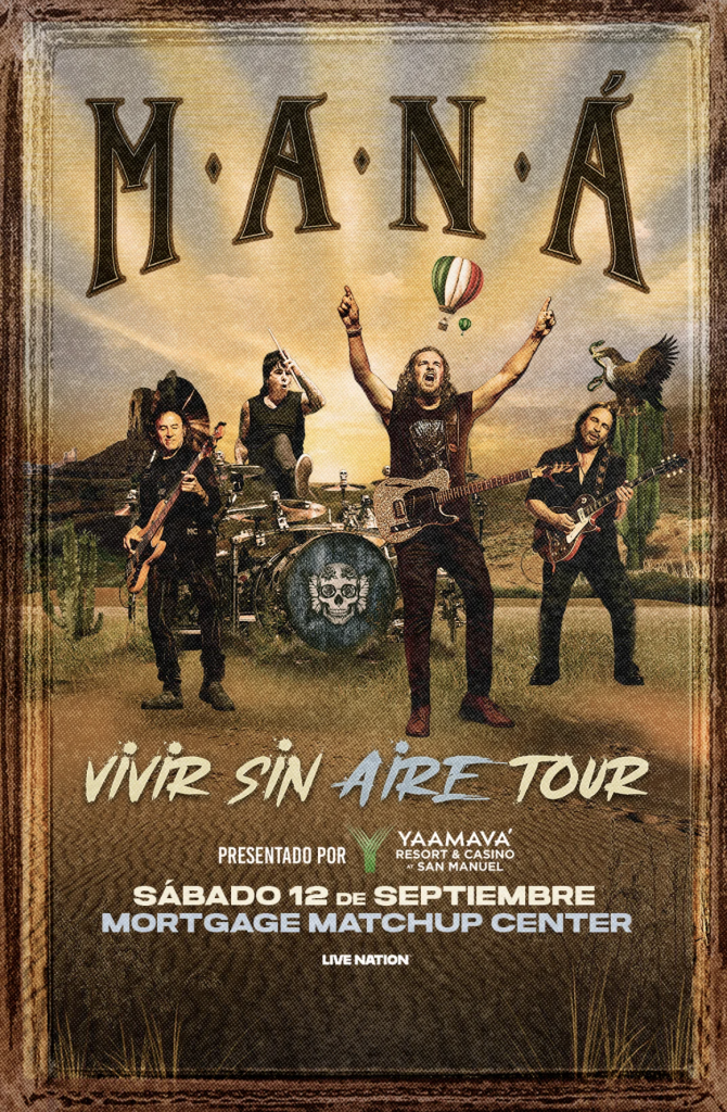 Latin rock legends Maná are heading to the Valley this fall as their highly anticipated “Vivir Sin Aire” Tour makes a stop at the Mortgage Matchup Center this September. The tour celebrates one of the band’s most iconic eras and promises a night filled with the timeless hits that have defined Latin rock for decades.